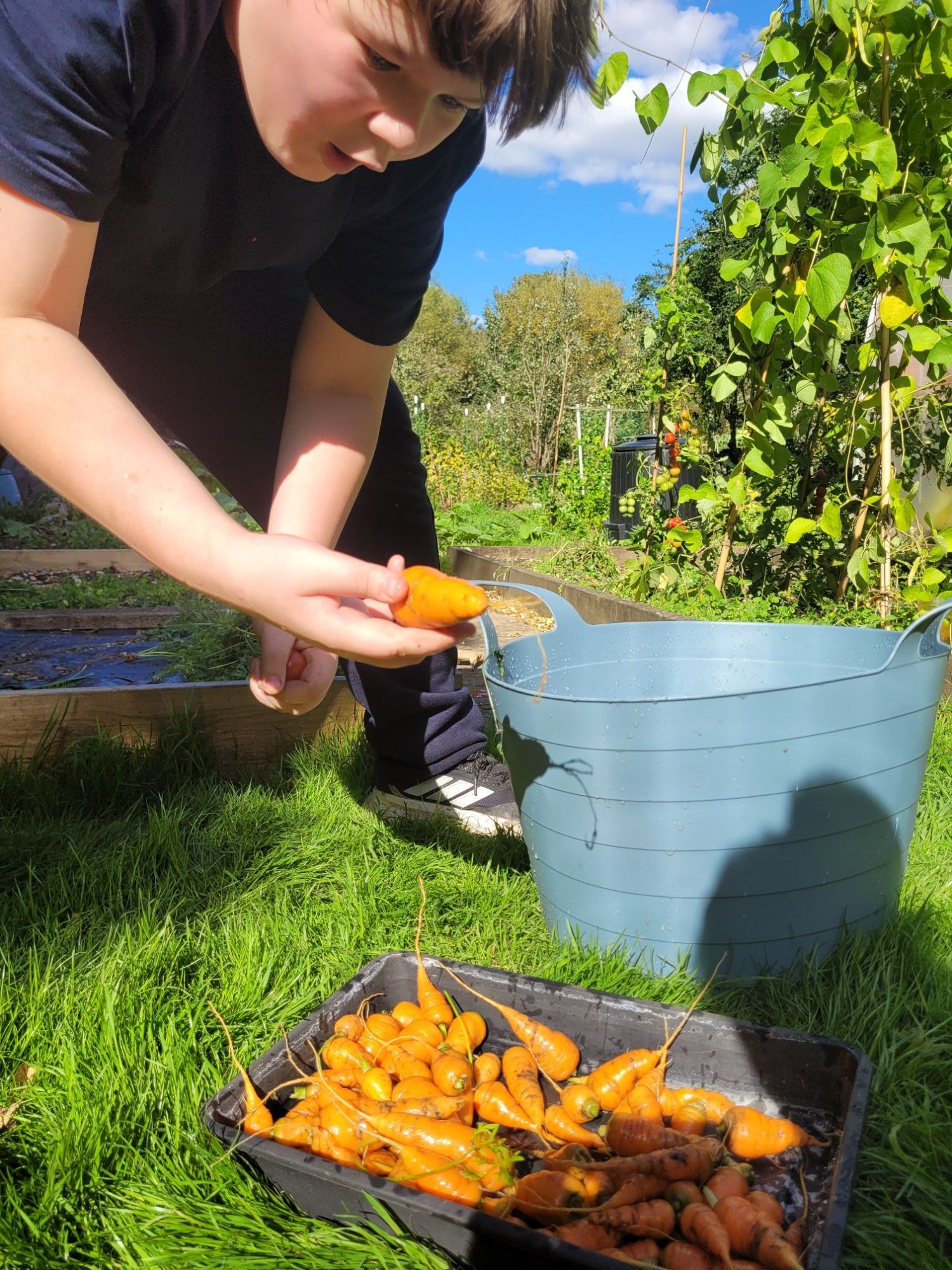 The carrots that were grown and harvested by pupils were given to the school cook who made delicious carrot cake for the whole school. The allotment also provides a calming environment for pupils who may need a peaceful time to reset and an excellent space to provide nurture.