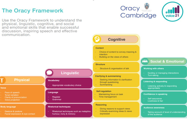 We believe spoken language to be fundamental to the achievement of our students and to them as life-long learners. To ensure that we are teaching oracy skills across the curriculum and providing our children with a range of oracy opportunities, we have joined the Voice 21 project (a charity which aims to improve the teaching of oracy in schools).